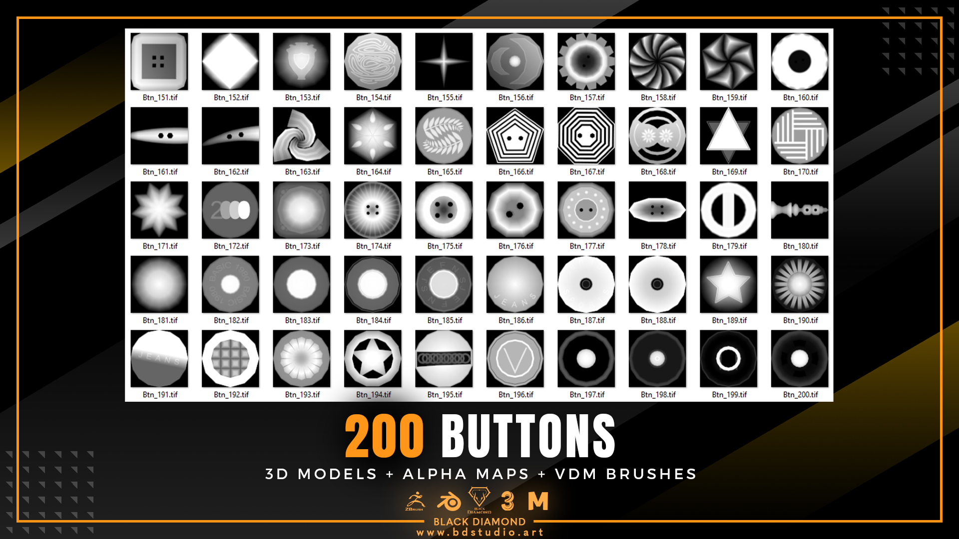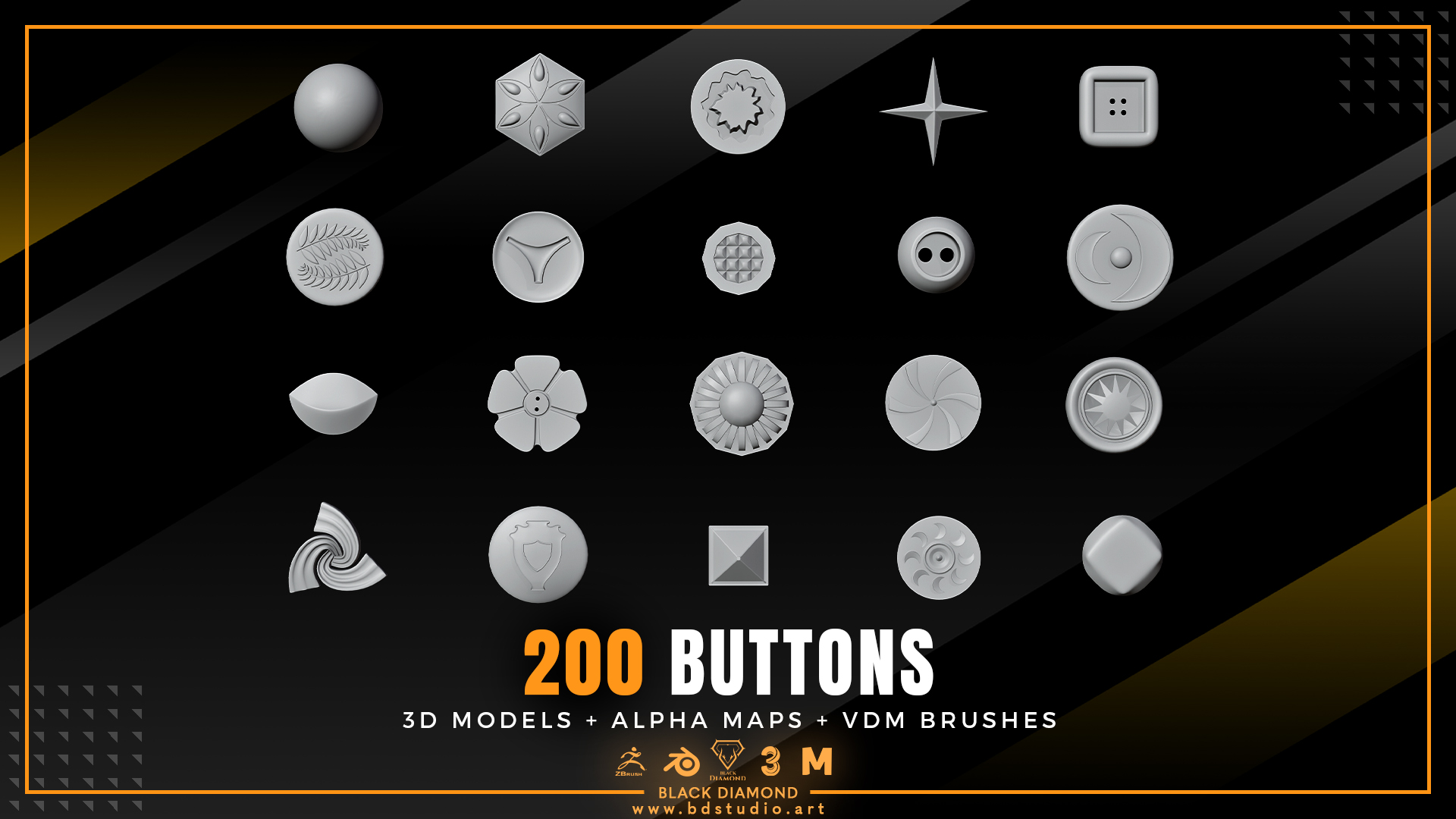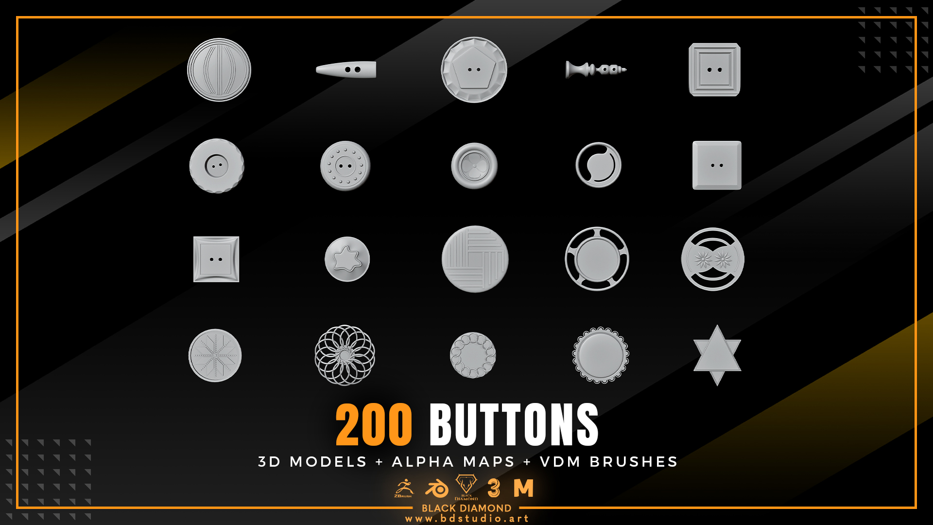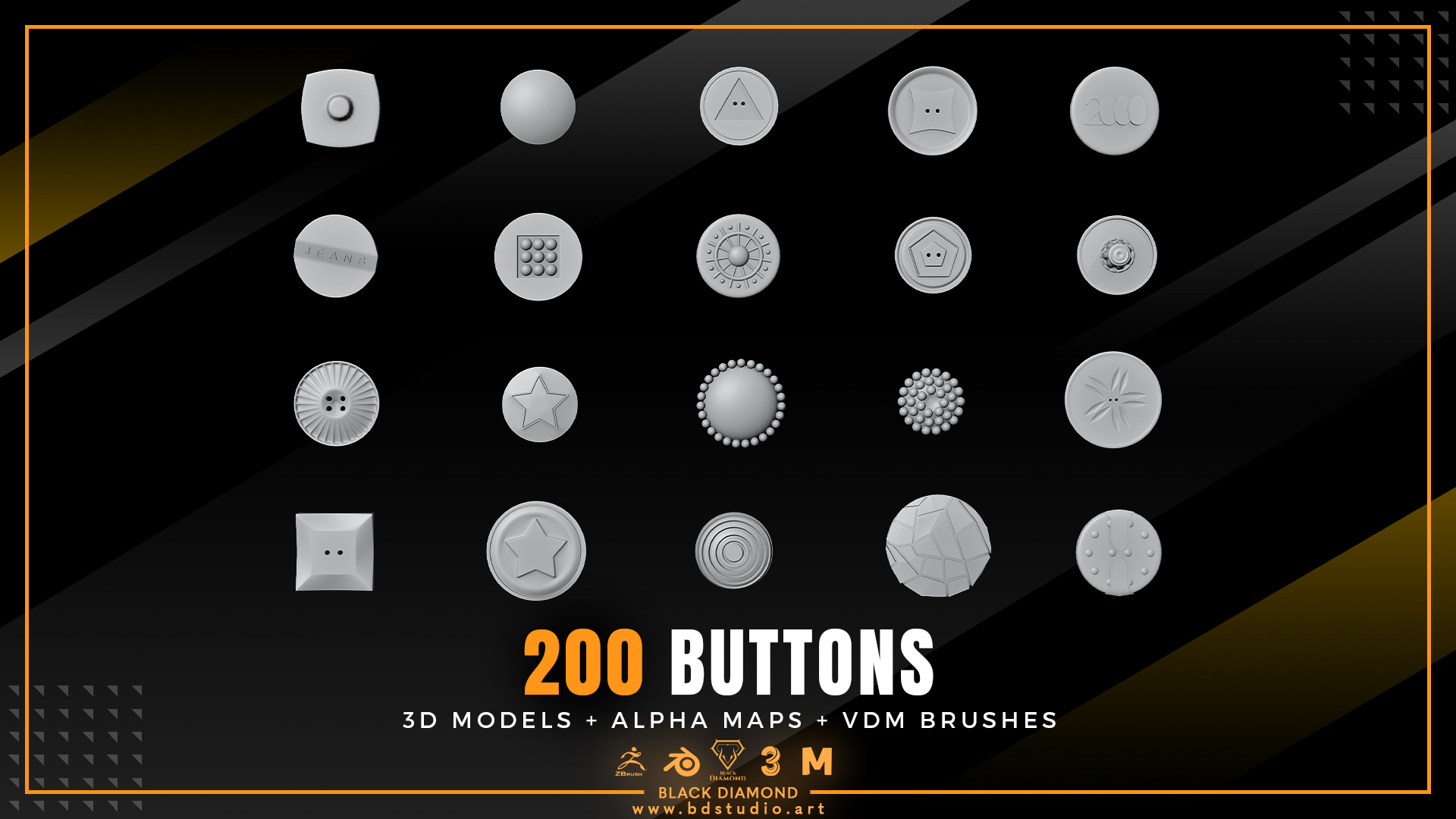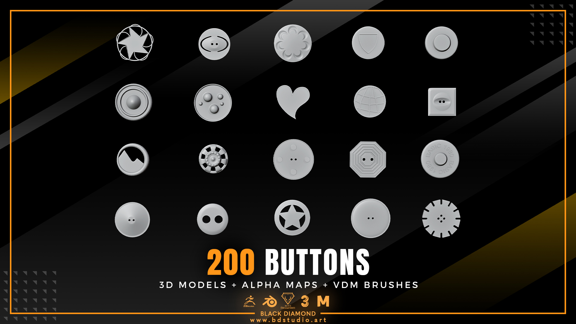 200 Buttons ( 3d Models + Alpha Maps + Vdm Brushes )