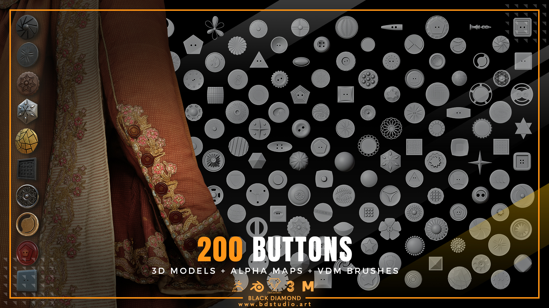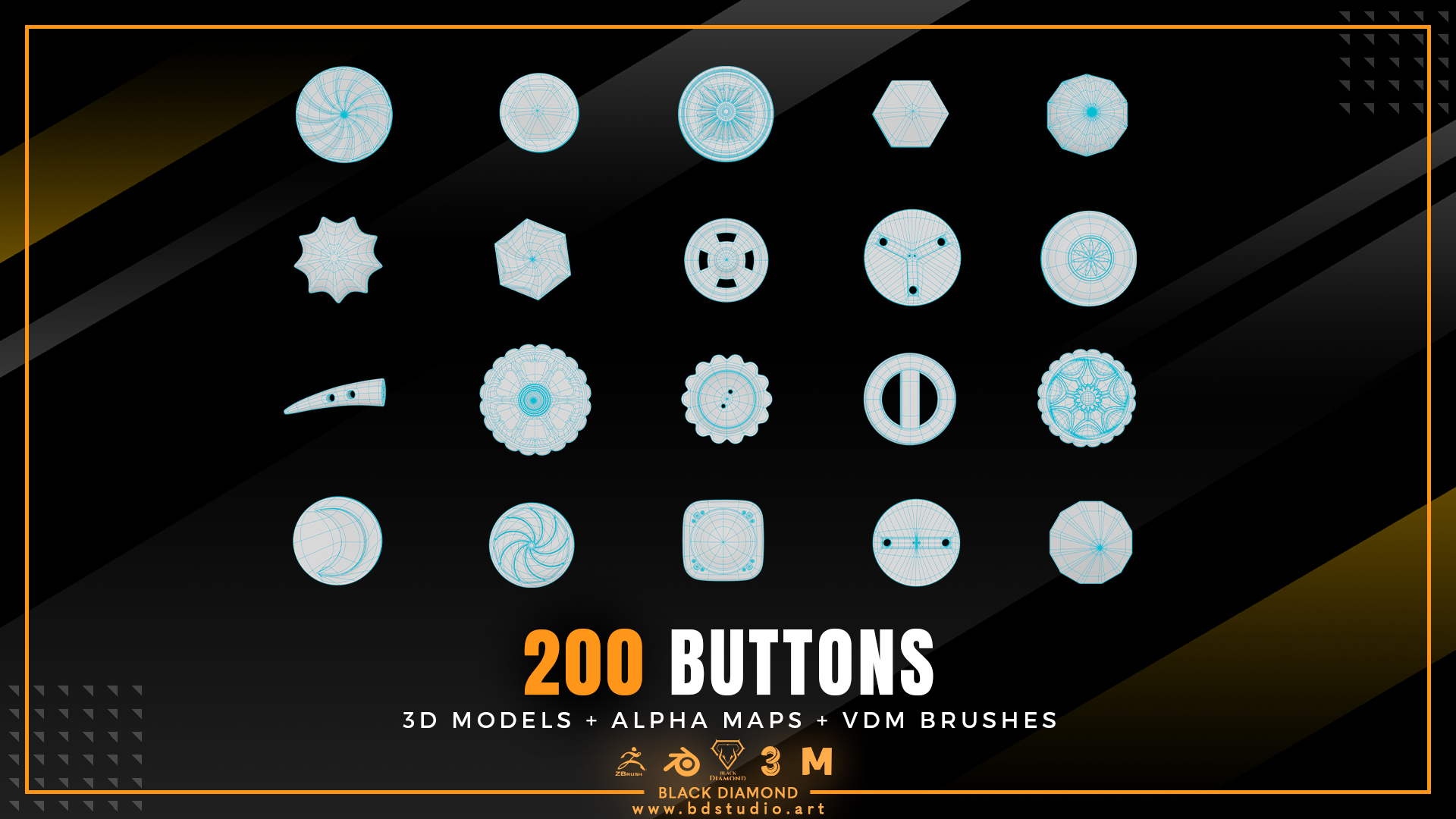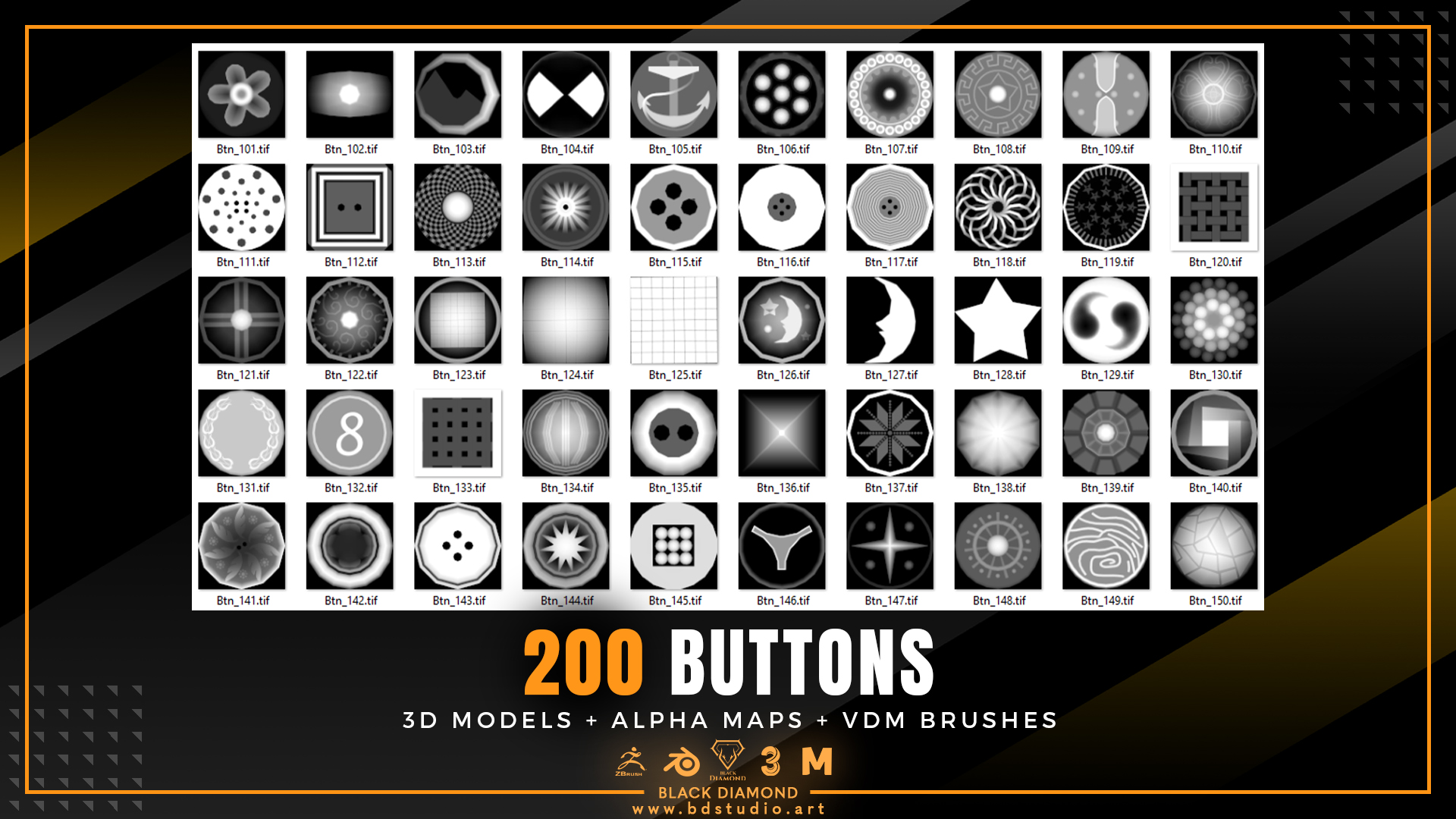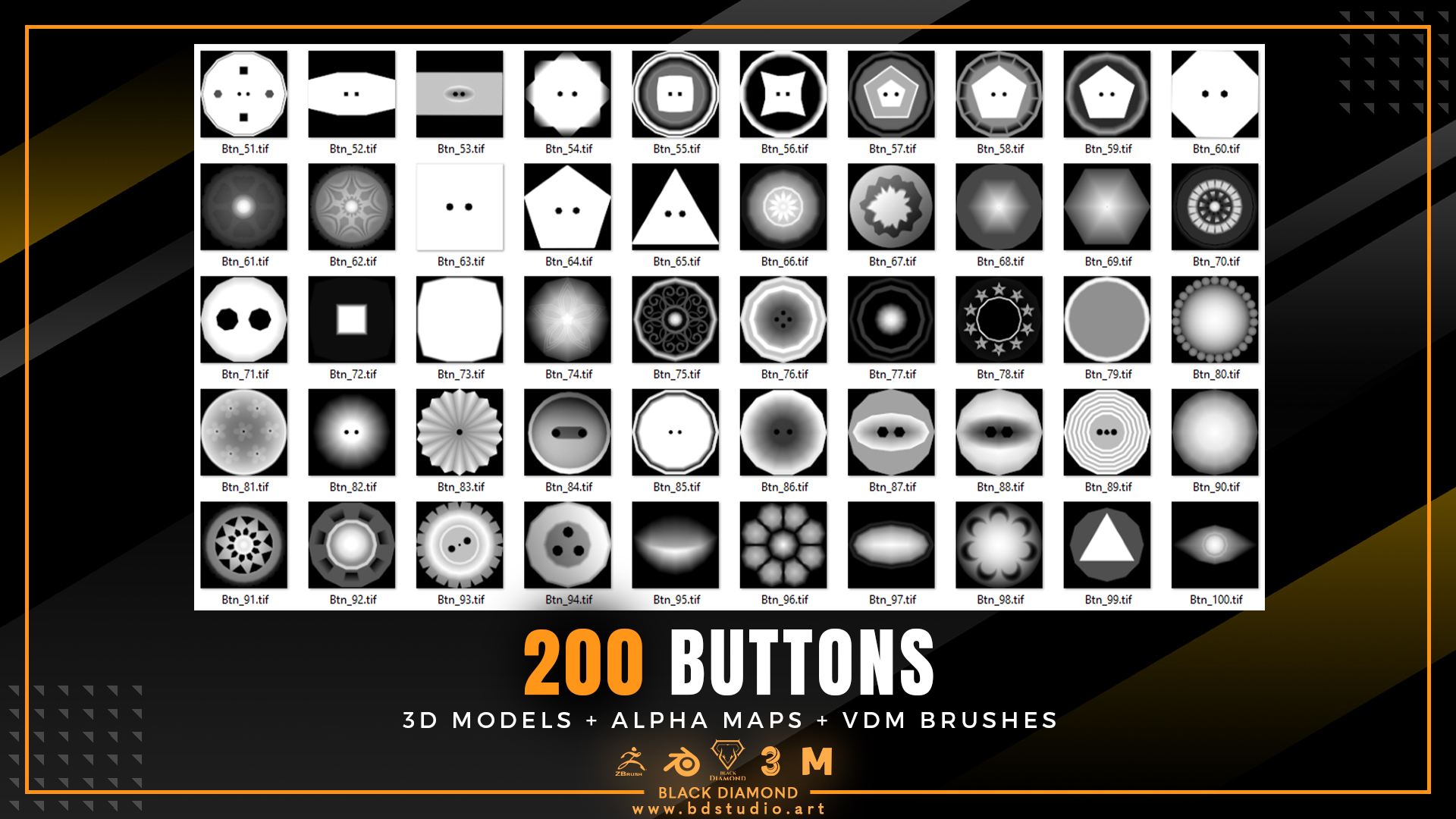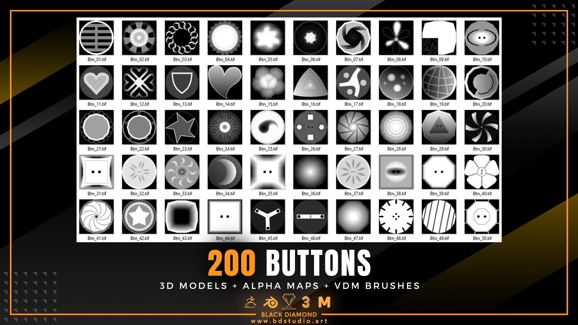 200 Buttons ( 3d Models + Alpha Maps + Vdm Brushes )