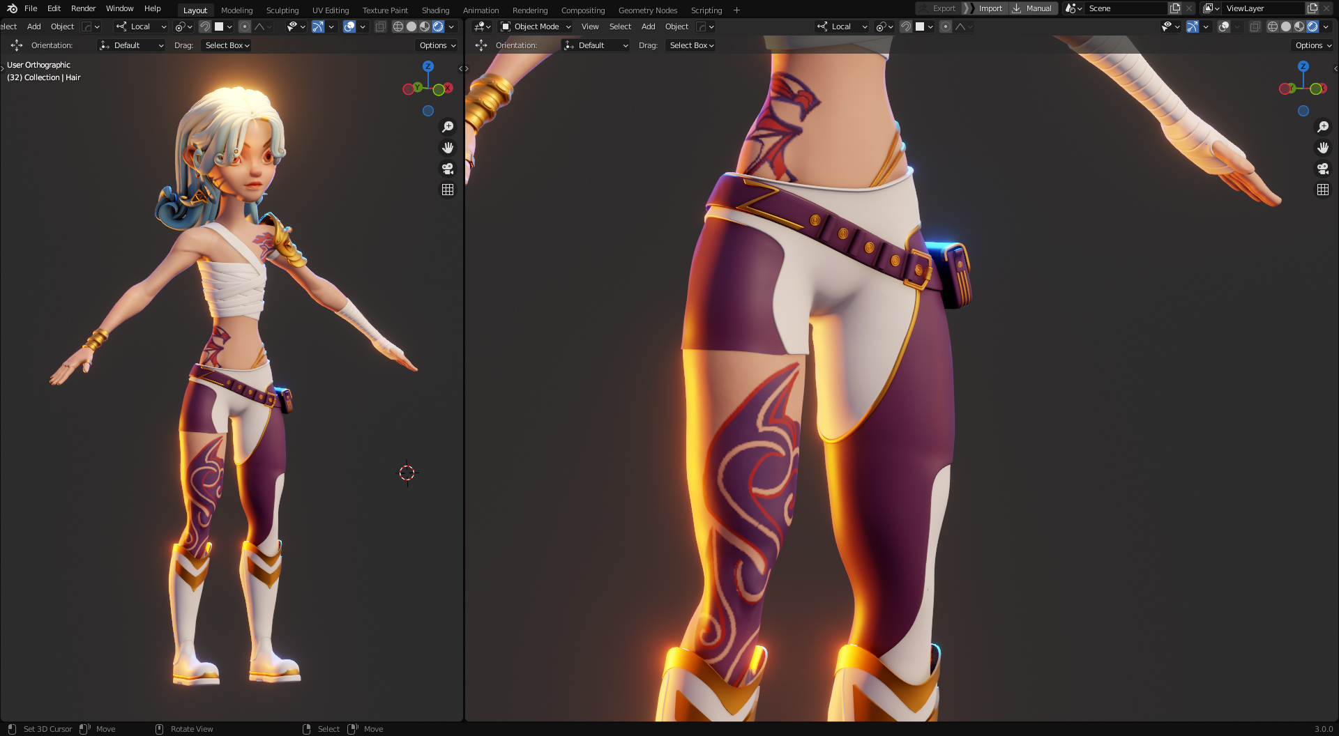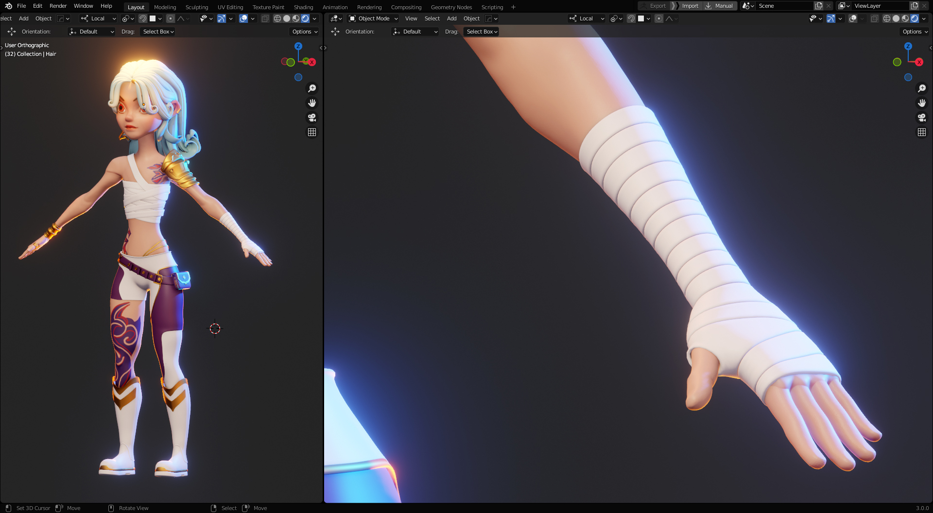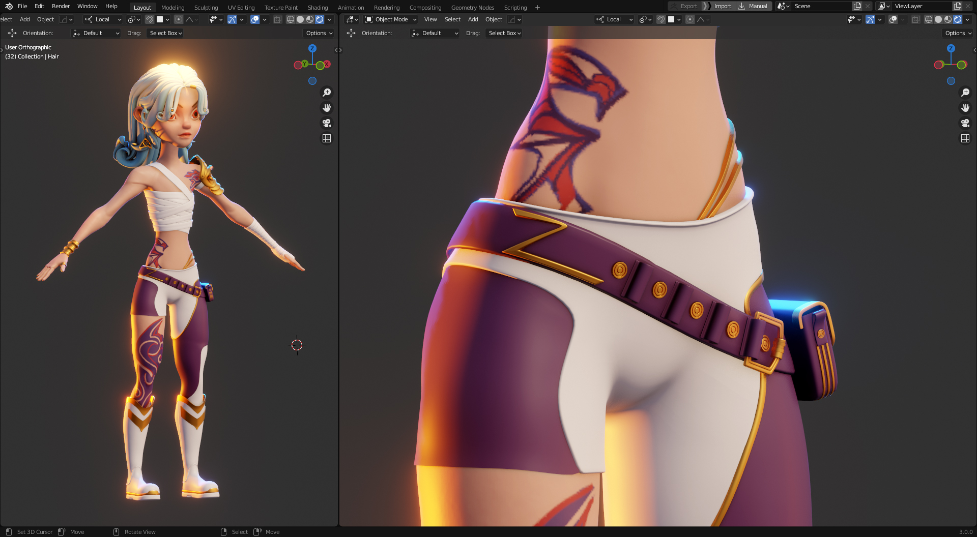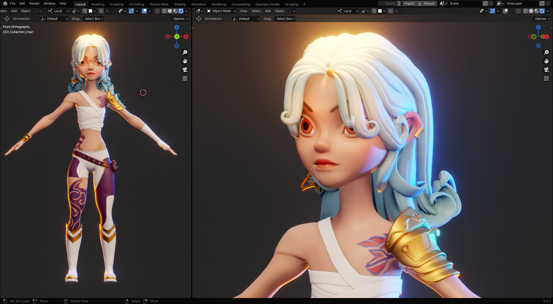 Character has been sculpted with high poly and created using Blender 3.0